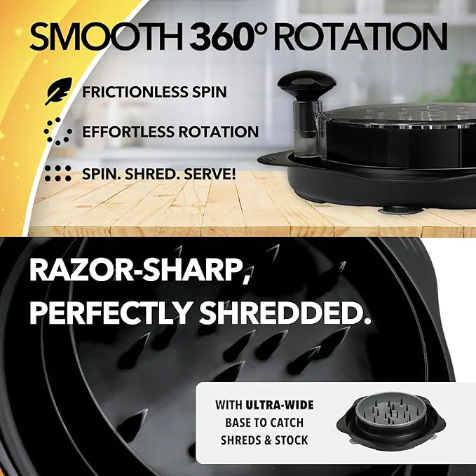 Comfortable non-slip handles and powerful shredding teeth ensure a smooth, effortless twist every time! Perfect for quick and easy meal prep.
