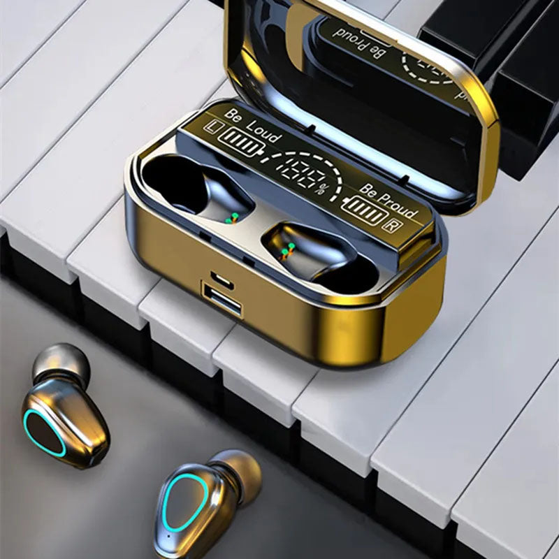 2 Pieces Earbuds(with 1 Piece Charging Cable, 1 Piece Instruction, 2 Pieces Ear Caps, 1 Piece Charging Box).